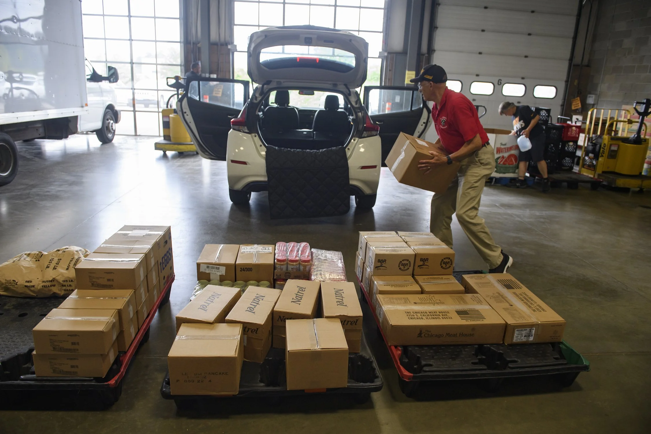 Tom Berna, operations manager for Fishes and Loaves, loads up supplies. Photo by Jeff Swensen