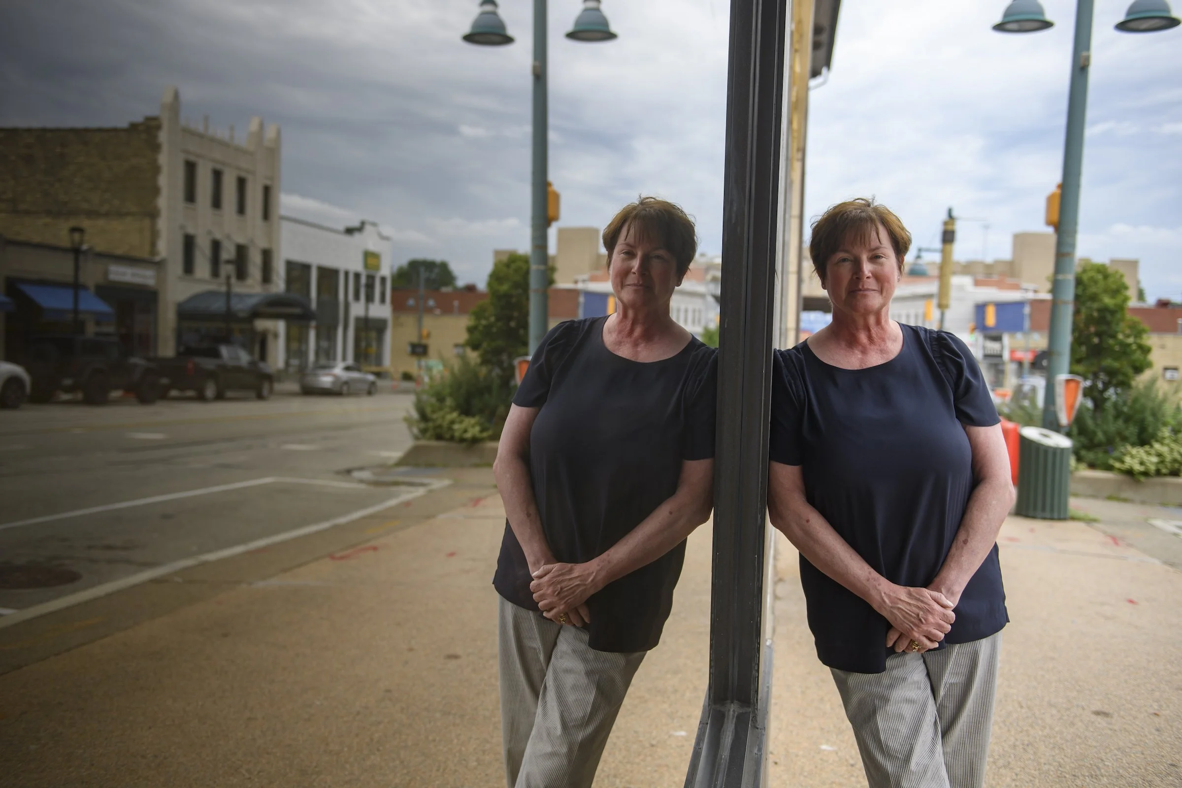 Mary Birks, executive director of Outreach Teen and Family Services, photographed along Washington Road In Mt Lebanon at the organization’s offices. Photo and caption by Jeff Swensen.